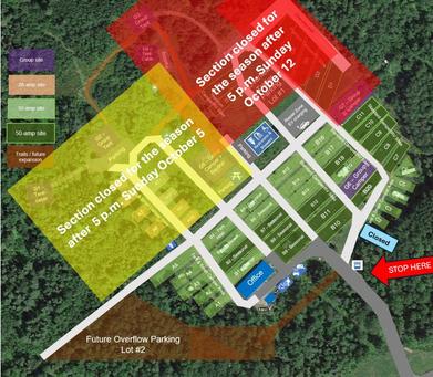 We are open to daily, weekend and weekly camping until noon on Wednesday, October 29. We are open for our seasonal/monthly guests until noon on Friday, October 31.